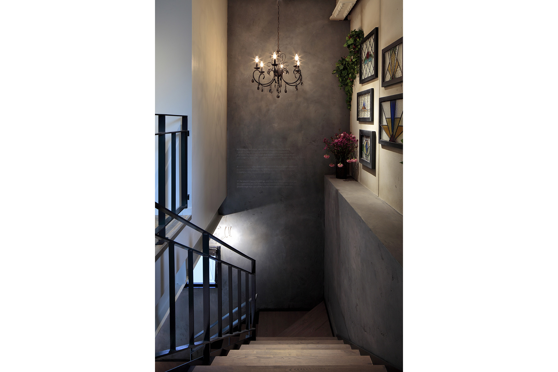 既存店階下1階テナントが空いたとのことで増床した美容室の新装デザイン。オーナー様からの要望は『既存店デザインと調和させながらより拘りの強い空間にしたい』というものでした。ダメージ加工したモルタルや横浜赤煉瓦倉庫をイメージした煉瓦の壁、各所に描かれたイラストやメッセージ、アンティーク調雑貨など遊び心と非日常感のある空間を目指しました。