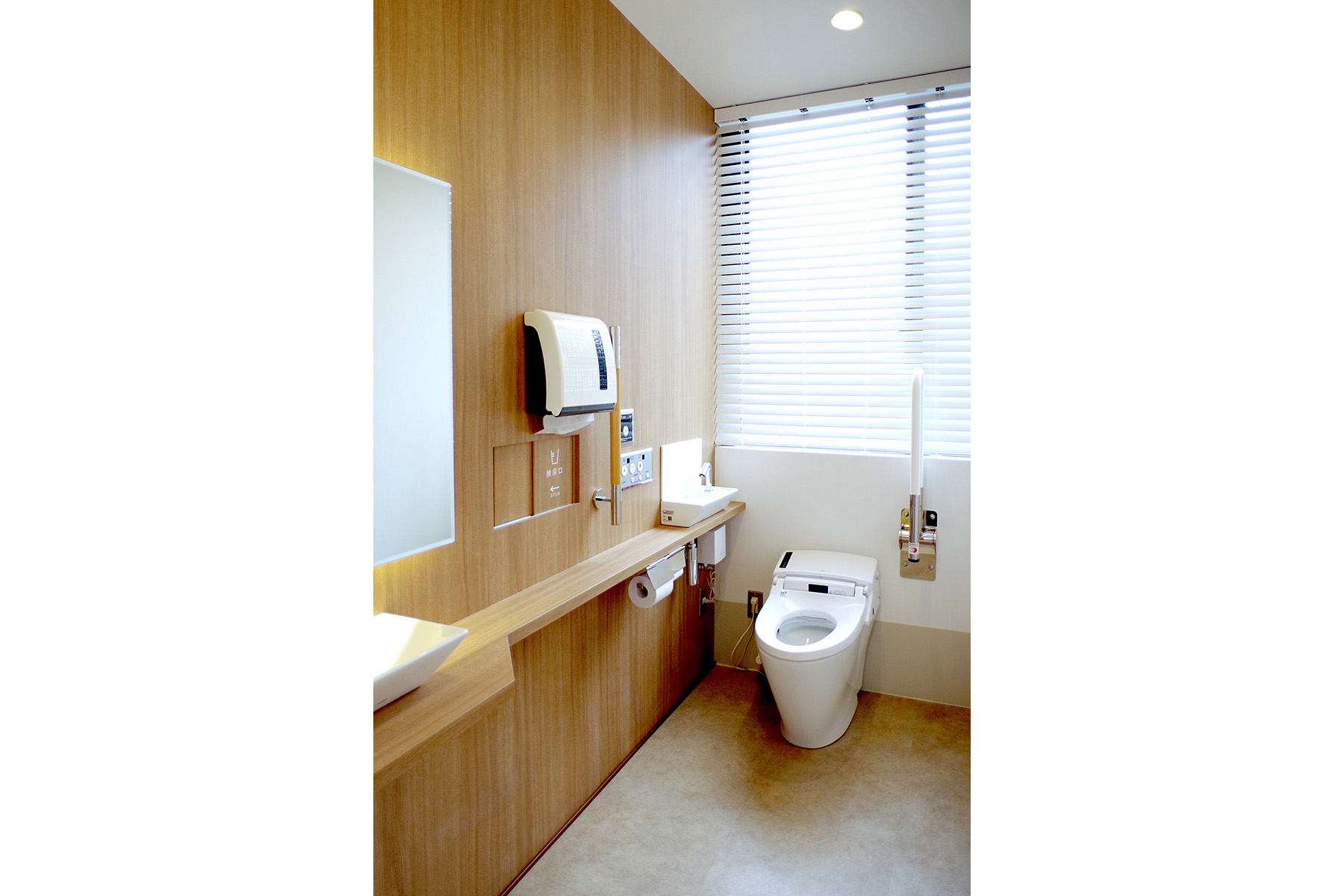 整形外科・リハビリ科クリニックのリニューアルデザイン。先生からの要望は代替わりのタイミングで『若い患者さんにも入りやすい明るい雰囲気のクリニック』にしたいというものでした。明るい木目と白、間接照明、大きな窓を組み合わせることで開放感があり明るく優しい空間を目指しました。