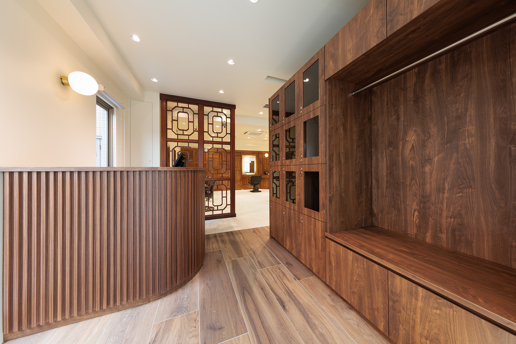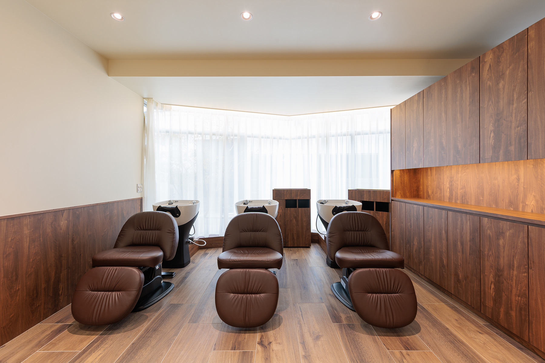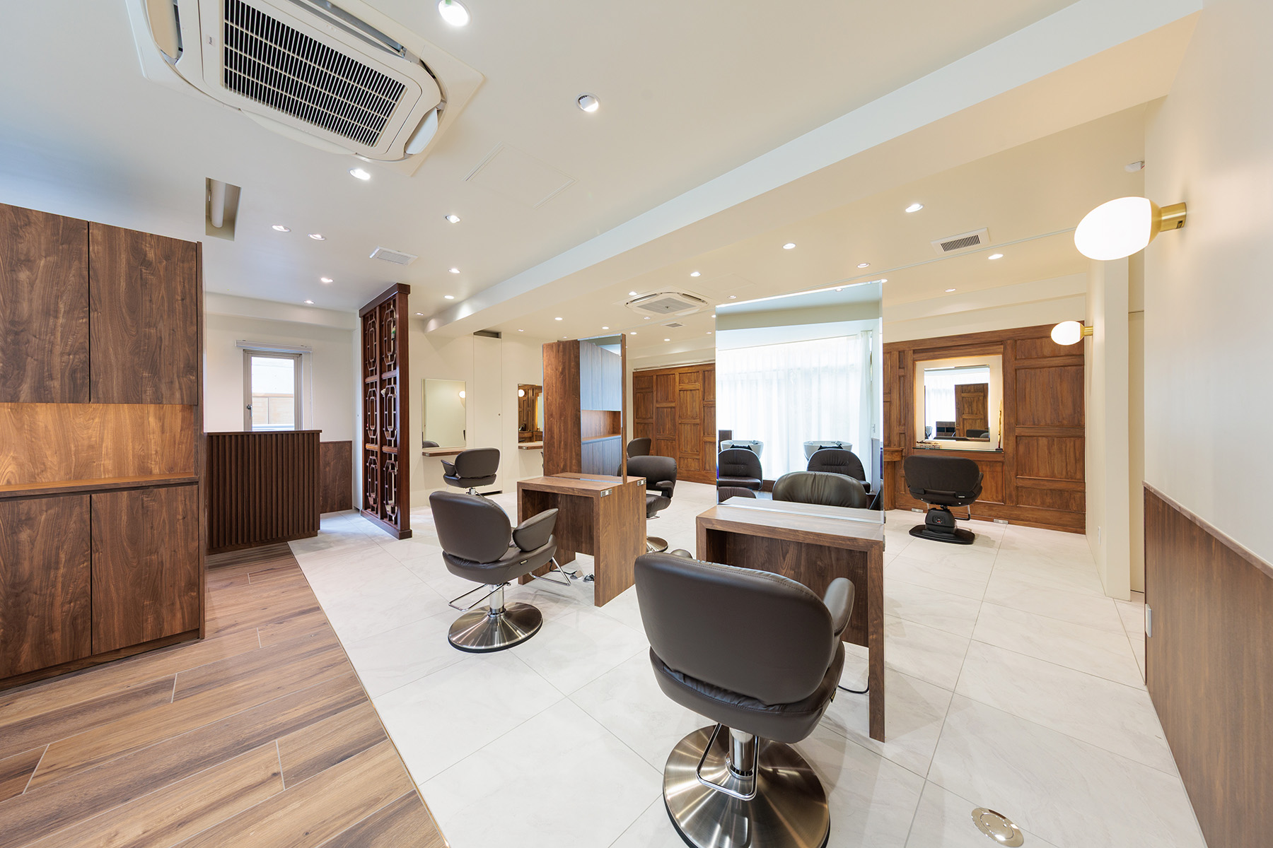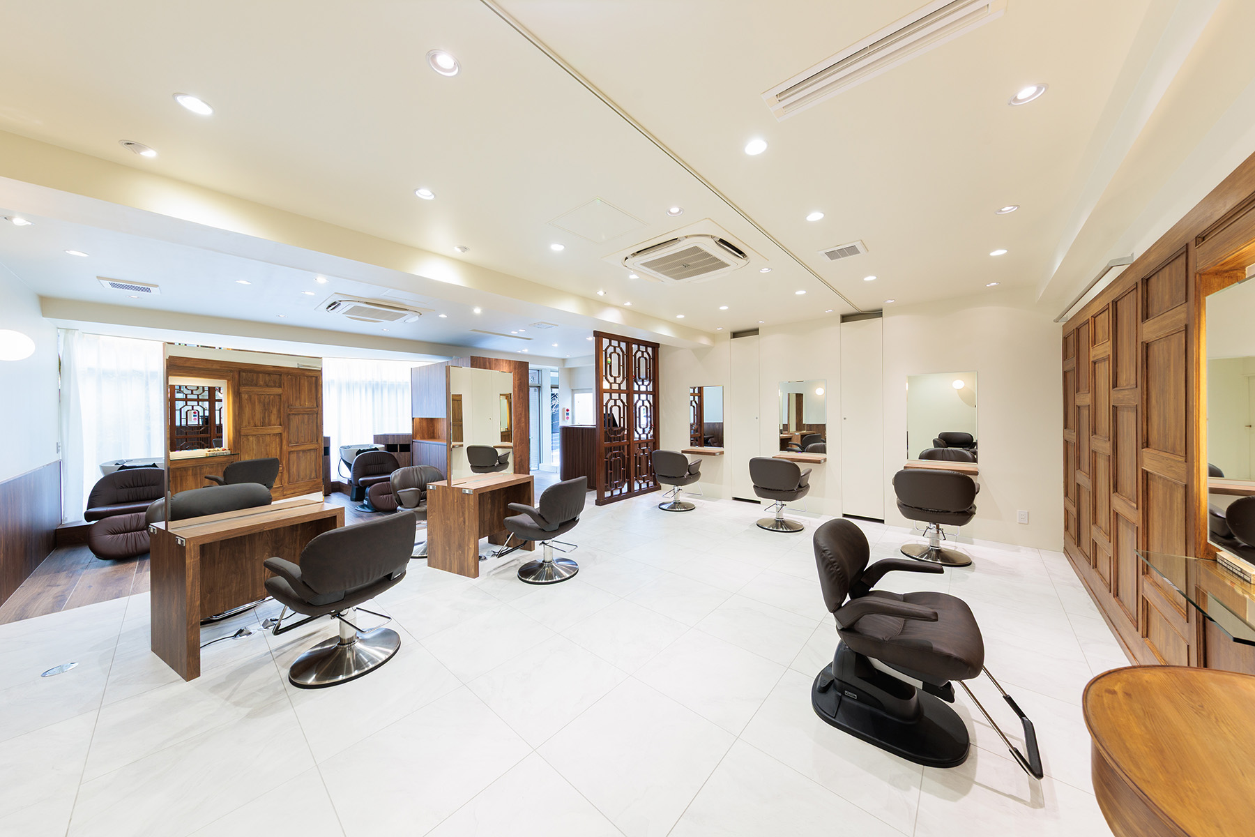 東京・神奈川で多店舗展開されている美容室「KINGDOM」の鎌倉店全面改装プロジェクト。「すべてを壊す」のではなく「積み重ねを活かす」をテーマに、30年にわたって地域に愛されてきた空間の記憶を残しながら、新たな価値を重ねるデザインとしました。レイアウトを再構築し、動線を整理することで席数を増やしつつ、居心地を損なわない計画に。家具や造作はすべてフルオーダーで設計し、既存の木部との調和を図りながら、鎌倉の街並みにふさわしい落ち着きと上質感を追求しました。新しさの中に、懐かしさが静かに息づく美容室です。