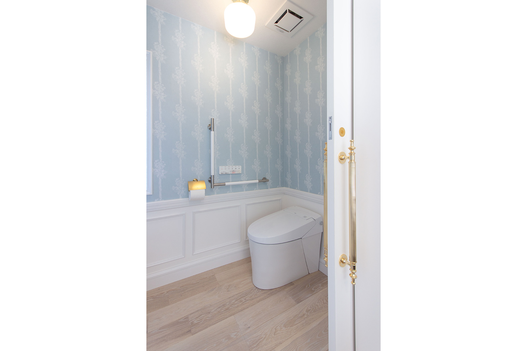 戸建て住宅の寝室リフォームをさせて頂きました。生活環境の変化を機に将来、介護部屋としても使えるよう寝室を広げトイレと洗面設備も同室内に完備したいとのご要望でした。介護施設のように落ち着いた雰囲気は機能的でも気分が沈むとのことで、お客様の好きな淡いブルーの柄クロスをベースに元気になれるような空間を目指しました。
